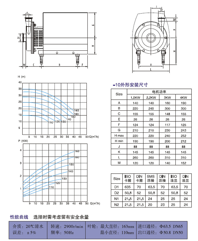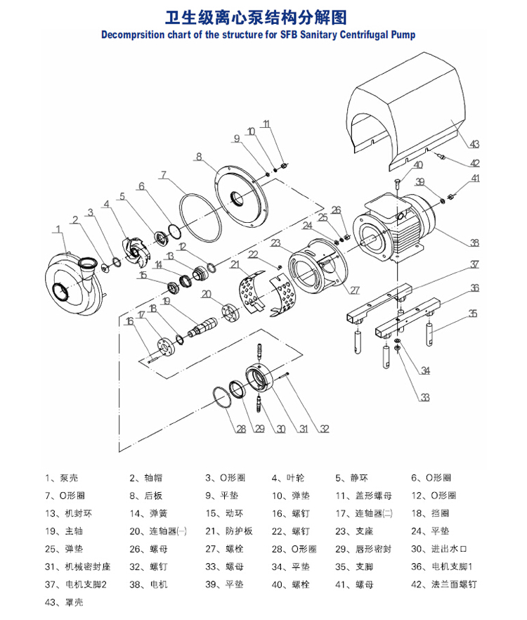 GEENSOON系列为单级、单吸、开式叶轮、离心式卫生。泵壳、叶轮、叶轮座经精心设计,降低了阻力,加快了泵内液体的流速.从而提高了泵的整体性能。叶轮的开式设计保证了最佳的可清洗性(CIP).具有卓越的卫生性能o在产品处理过程中具有满足卫生要求、平稳性、抗化学性能、高效率和易于维护等特点。泵由四只可调支撑,出口可回转任意角度.从而大大提高了安装和使用范围o